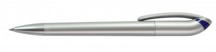 A twist action pen with elegant matt silver surface, clip ring available in 7 muted and 11 transparent colours. Matt silver nose cone. Choice of black or blue replaceable ink refill with a writing distance of up to 10,000m.