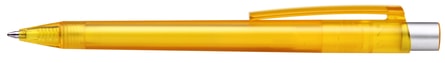 A push button pen with extra wide clip ideal for branding. Available in a choice of 11 mix and match transparent colours including the plastic push button tip and nose cone. Choice of black or blue replaceable ink refill with a writing distance of up to 6000m