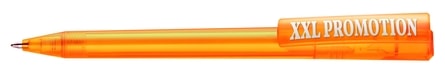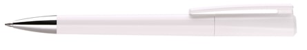 A twist action pen in a polished barrel and extra large frosted clip which comes in 2 matt and 10 transparent mix and match colours. A triangular top which can be colour matched with one of the 12 colours. Plastic nose cone. Choice of black or blue replaceable ink refill with a writing distance of up to 6000m.